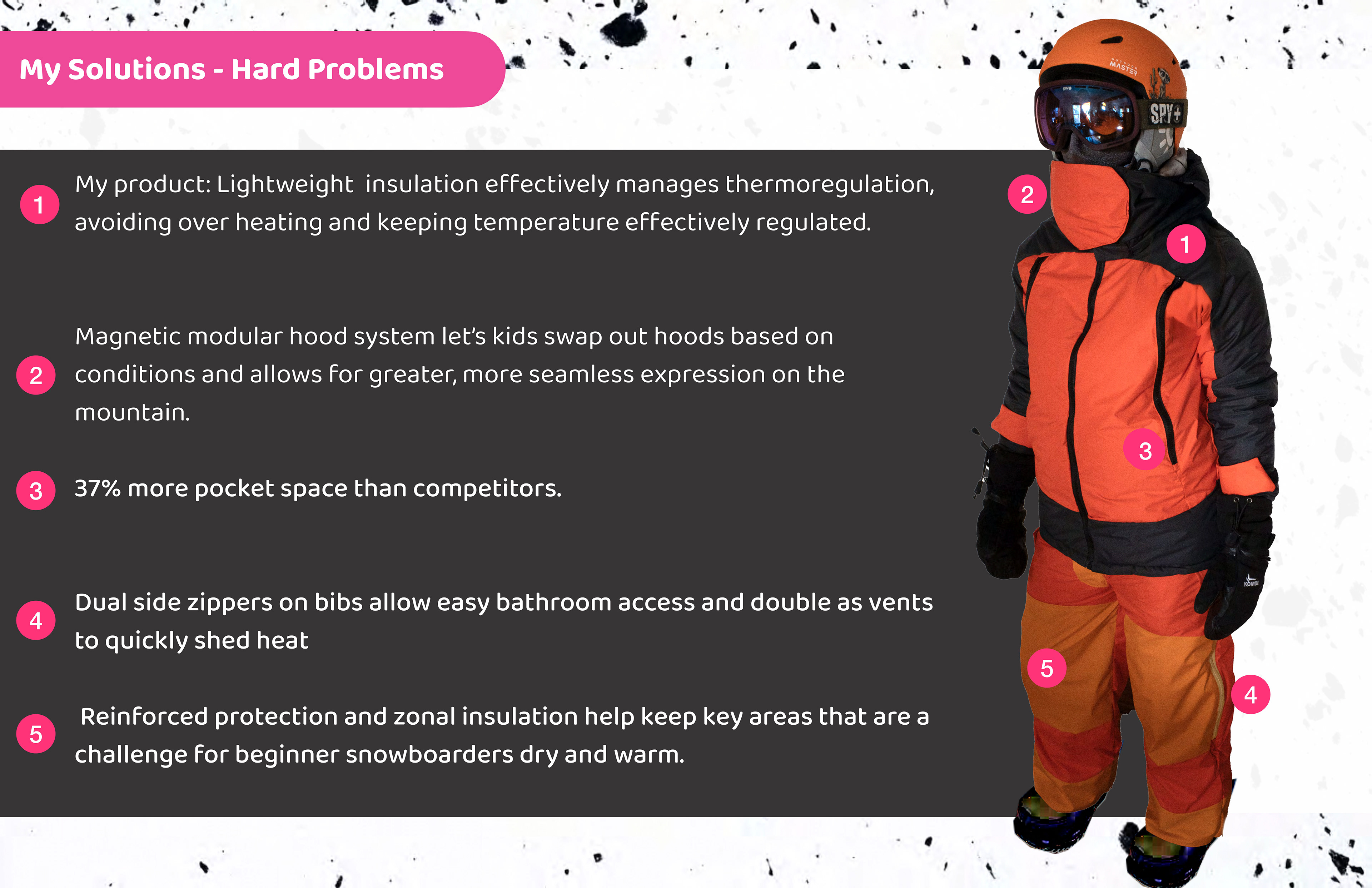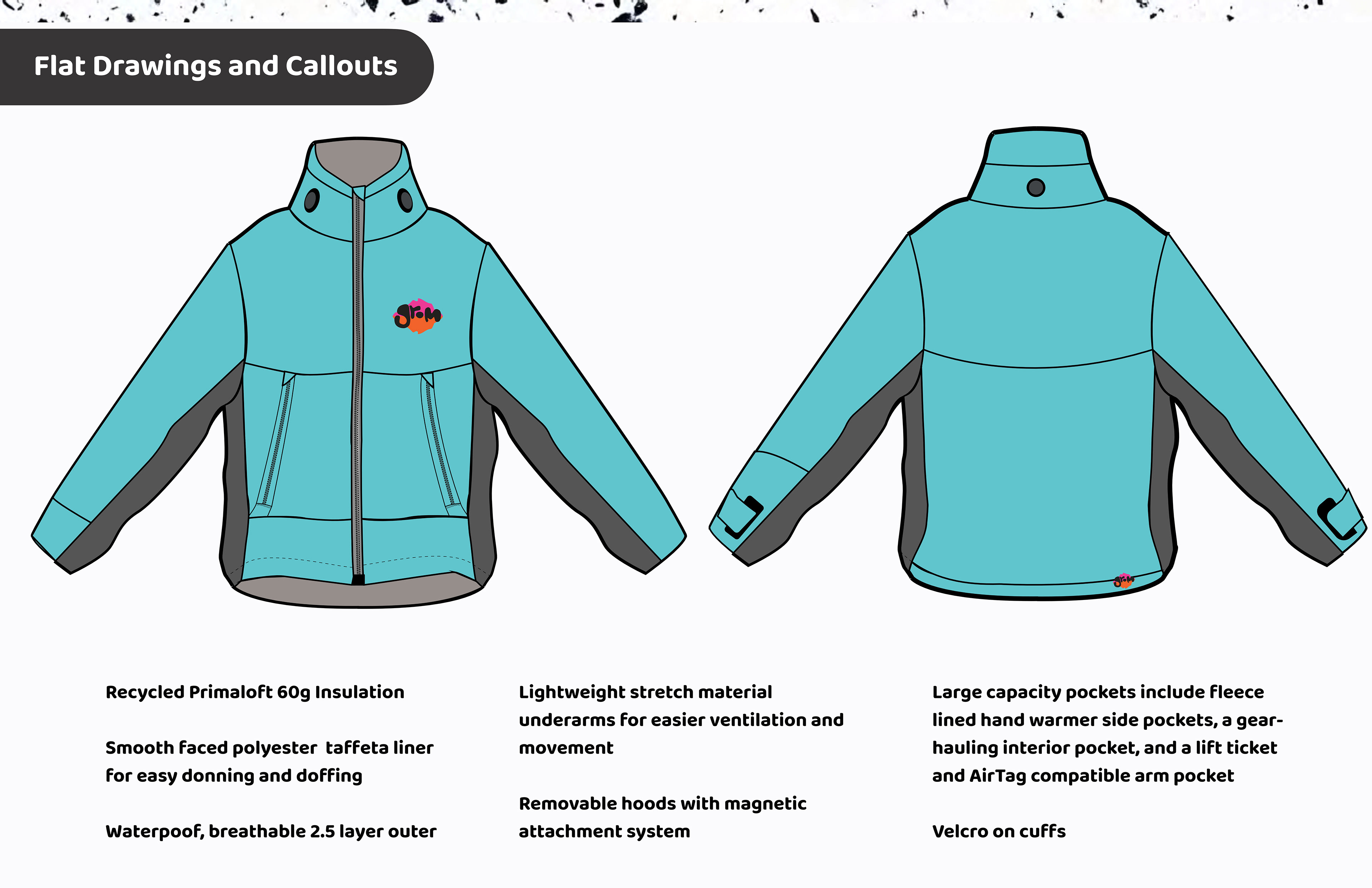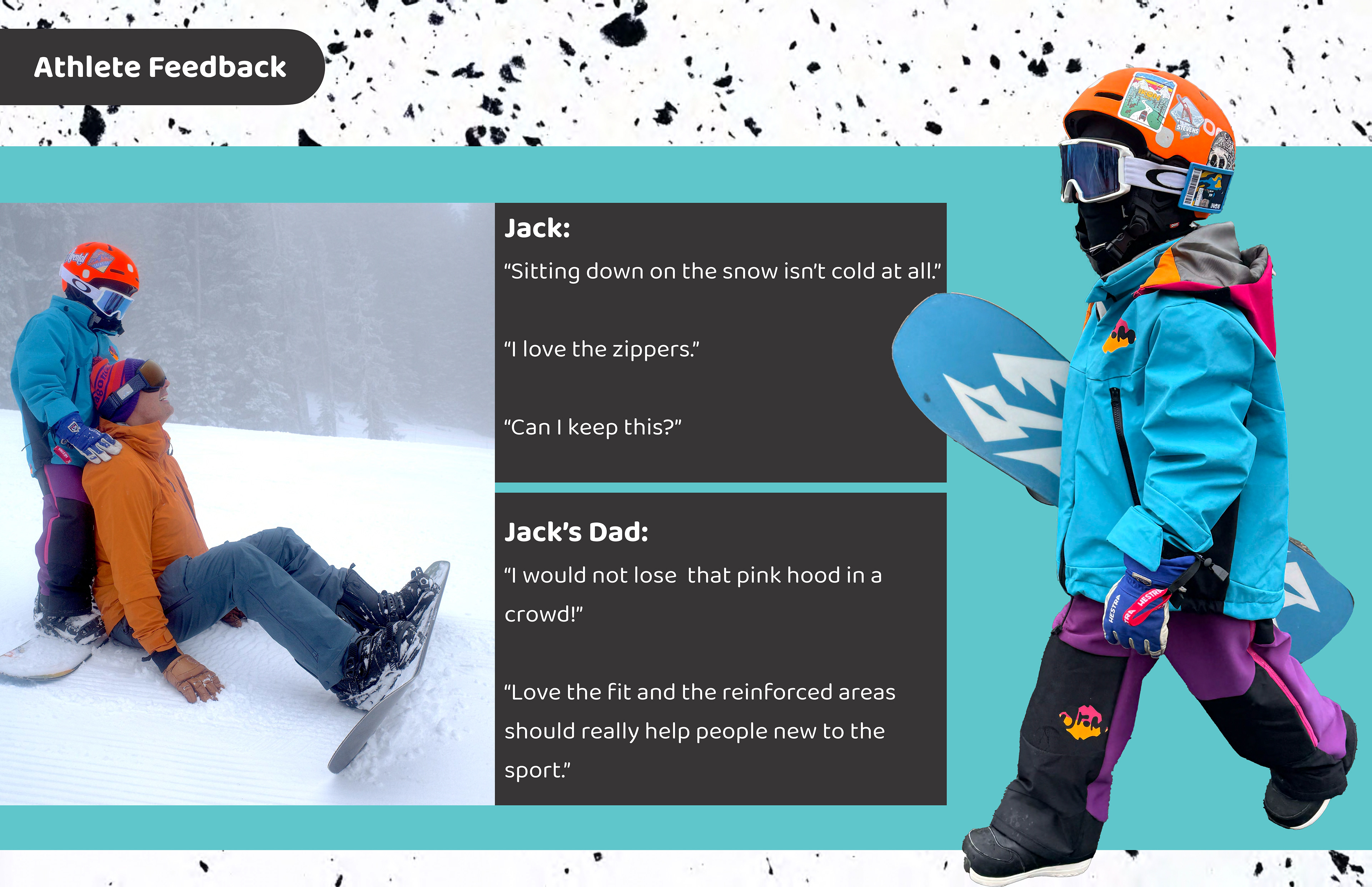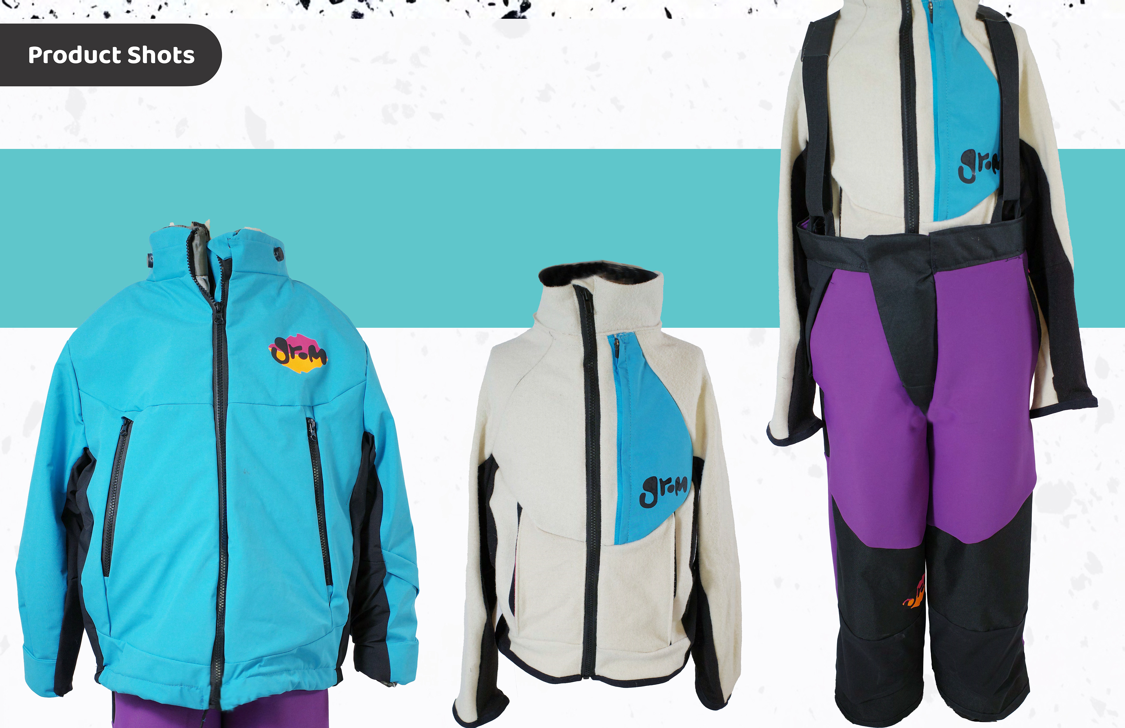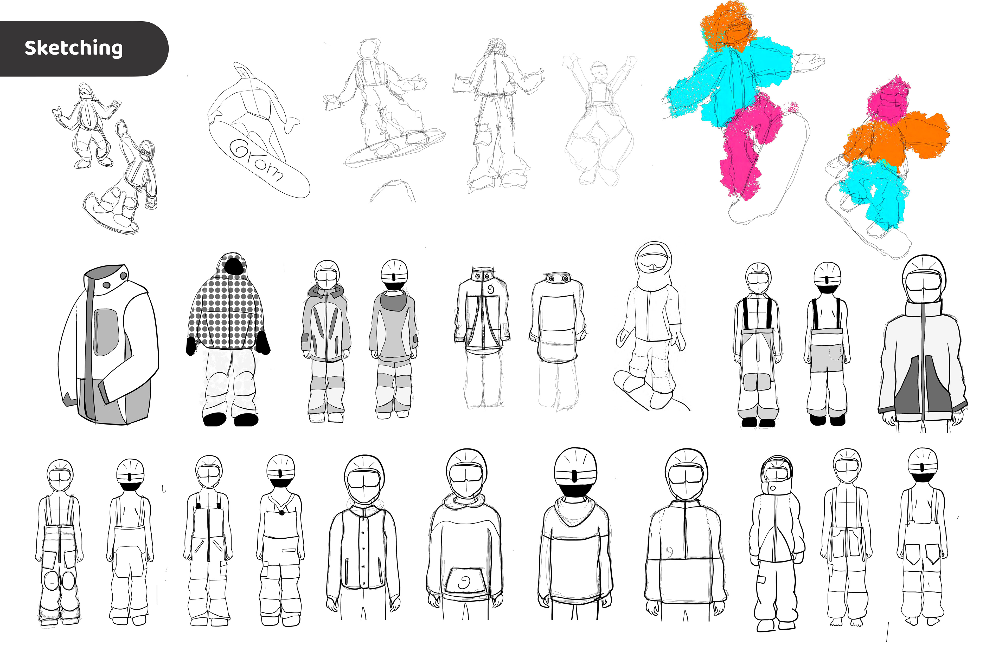 Master's Thesis for Sports Product Design at the University of Oregon. Grom is the culmination of a lifelong love of snowboarding and it's culture. Grom is a kid's snowboarding apparel collection that's thoughtfully designed to encourage beginners to love the sport. Key skills: Apparel Design, CLO3D, Pattern Making, Sketching, Rapid Prototyping, Physical Prototyping, Athlete Research, Ideation, Branding, Color, Adobe Illustrator, Tech Pack Creation