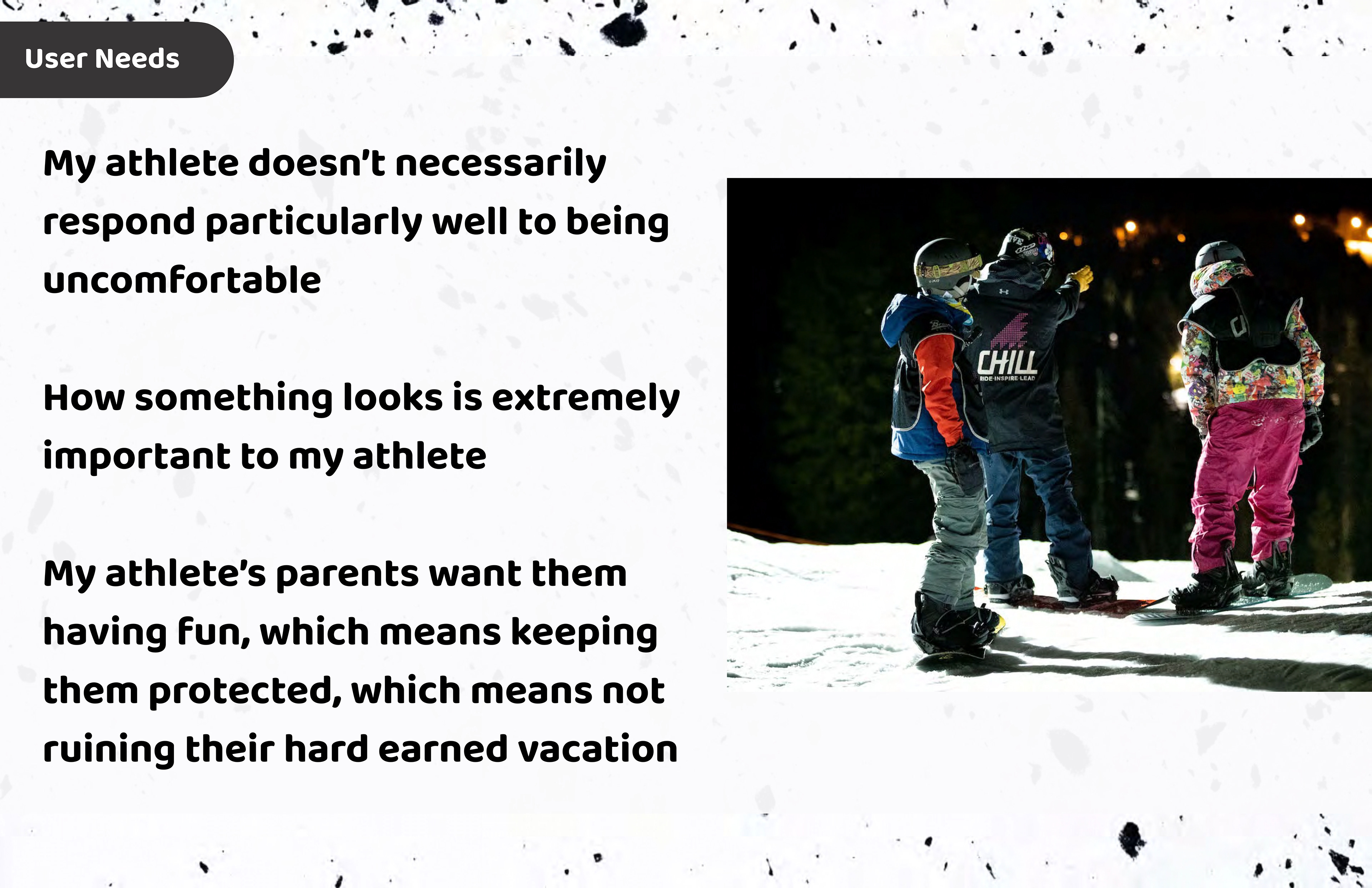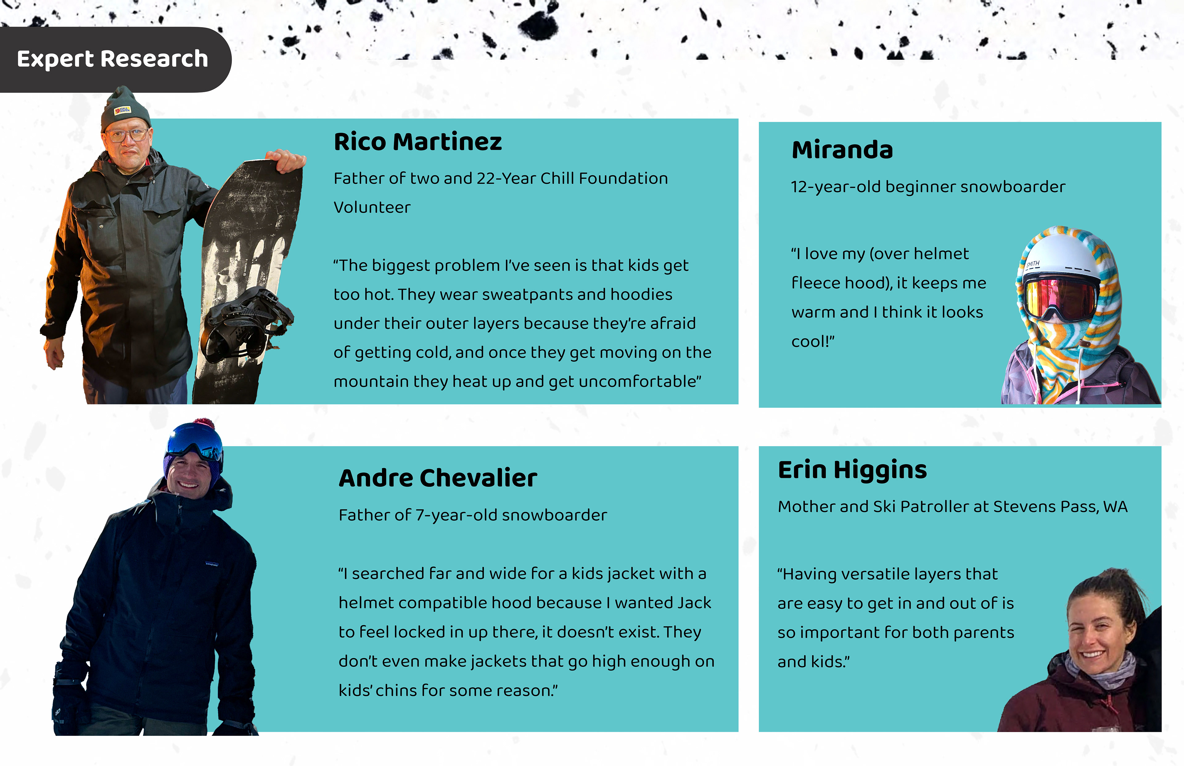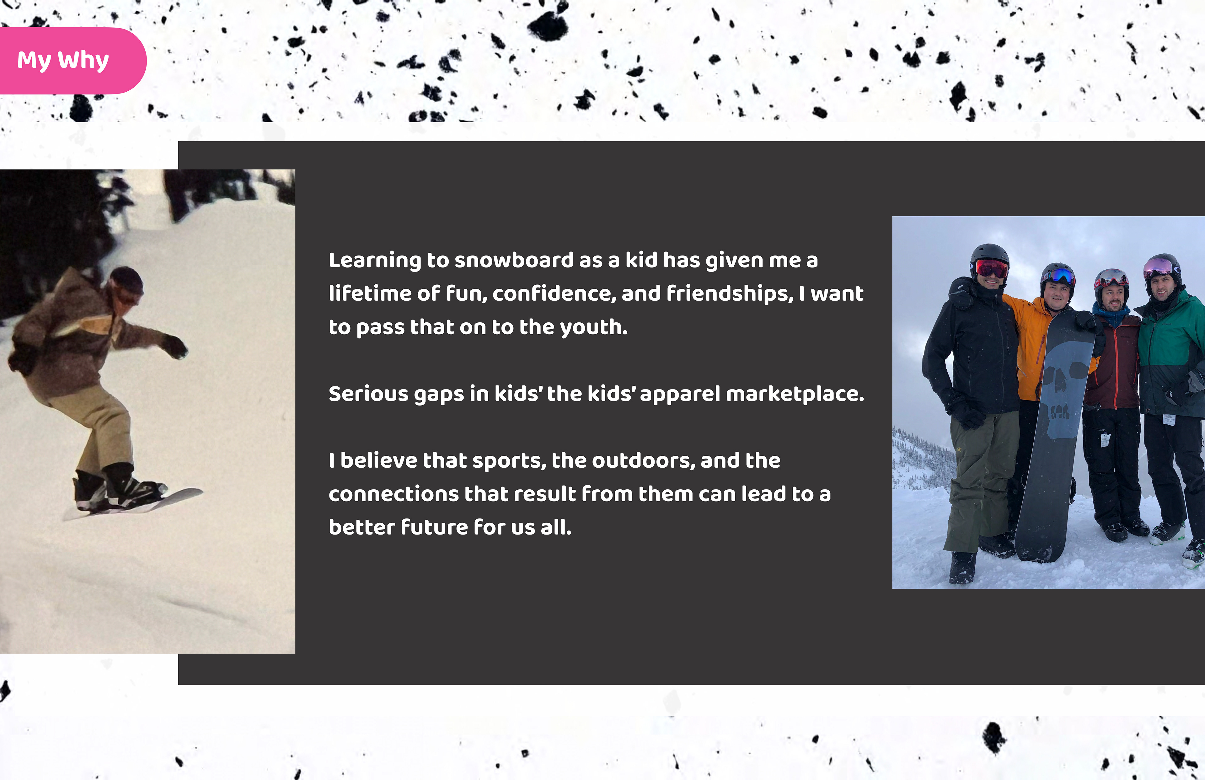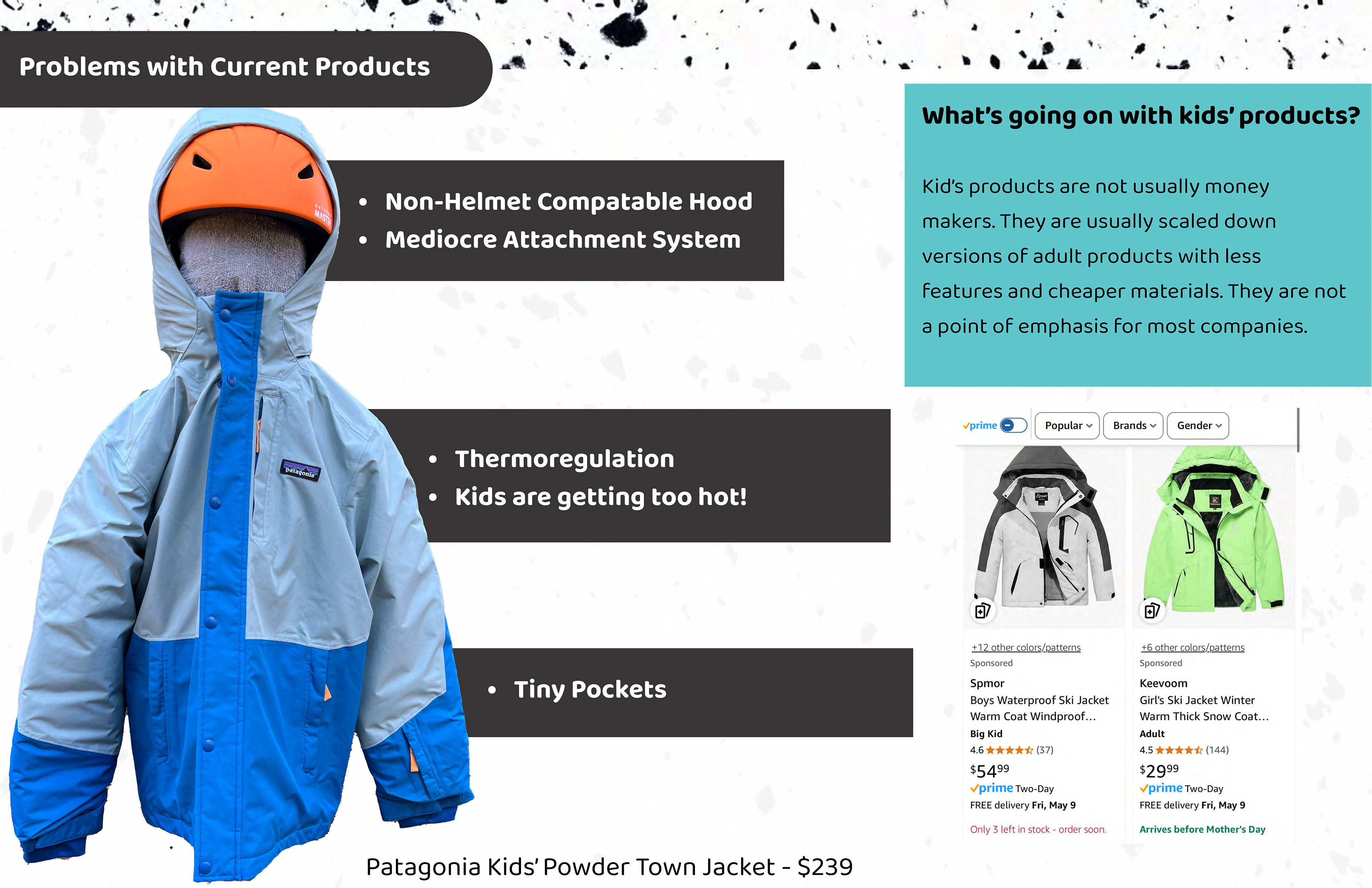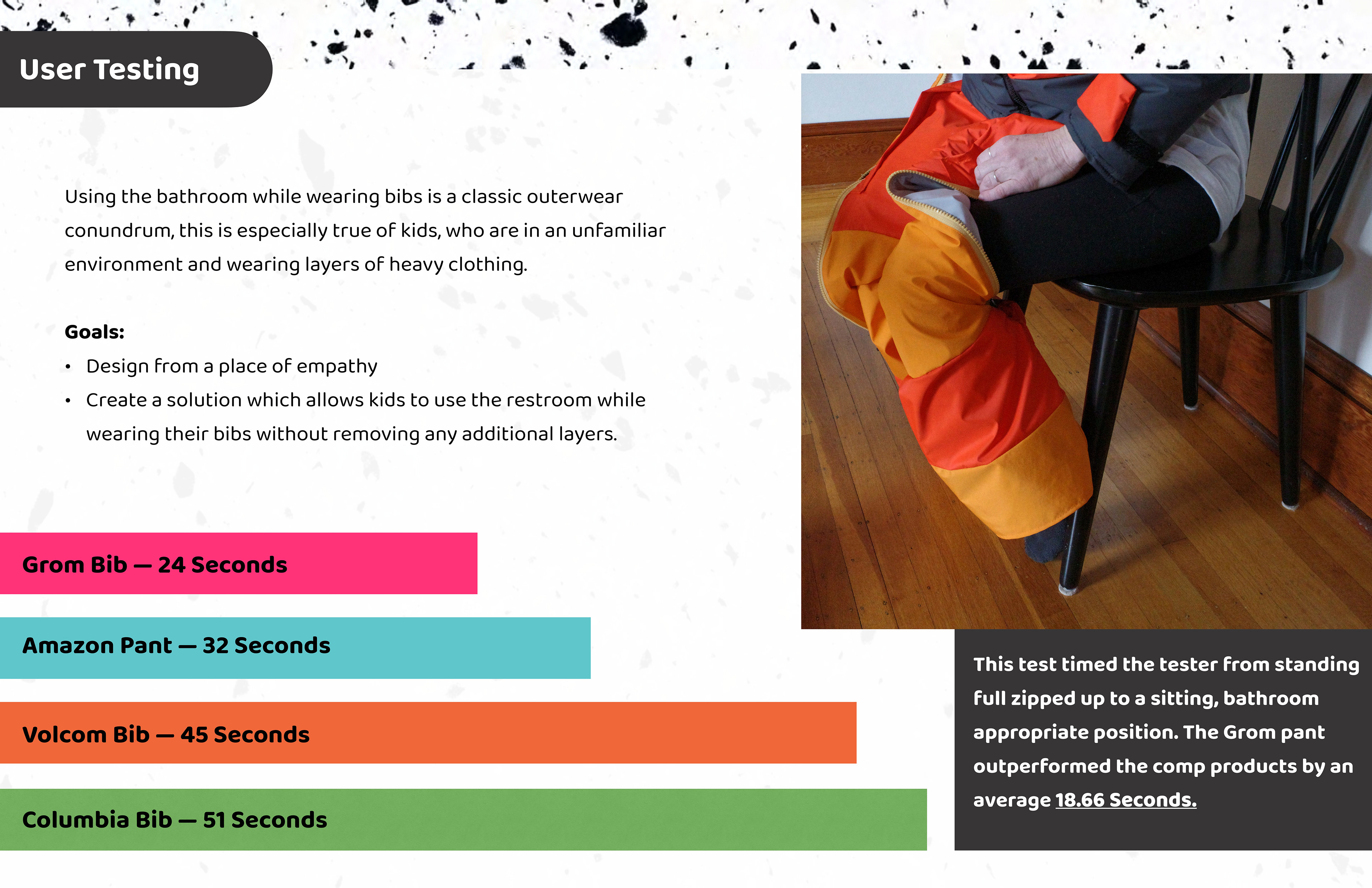Master's Thesis for Sports Product Design at the University of Oregon. Grom is the culmination of a lifelong love of snowboarding and it's culture. Grom is a kid's snowboarding apparel collection that's thoughtfully designed to encourage beginners to love the sport. Key skills: Apparel Design, CLO3D, Pattern Making, Sketching, Rapid Prototyping, Physical Prototyping, Athlete Research, Ideation, Branding, Color, Adobe Illustrator, Tech Pack Creation